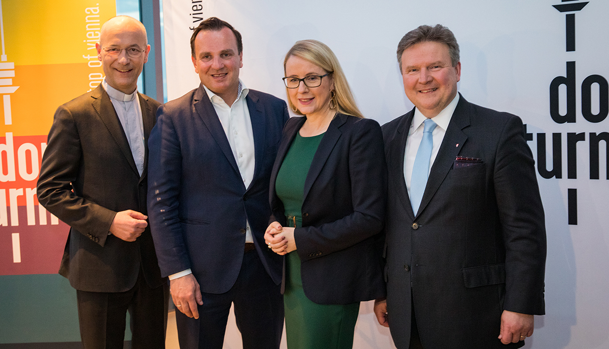 At today's press conference, Mag. (FH) Paul Blaguss, co-owner of the Danube Tower, Dr. Margarete Schramböck, Federal Minister for Digitization and Business Location, and Mayor Dr. Michael Ludwig presented the Danube Tower as an economic factor as well as the economic key points of the leading tourism enterprise. After the blessing by cathedral priest Toni Faber, the official ribbon cutting took place.